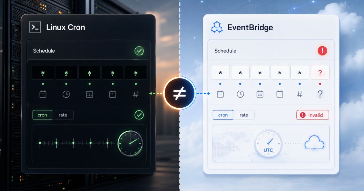 For new schedules that need time-zone support, flexible delivery behavior, or clearer schedule ownership, EventBridge Scheduler is usually a better fit than legacy scheduled rules. For existing scheduled rules, be explicit about UTC and validate every expression before it reaches the console, CLI, CloudFormation, CDK, or Terraform.